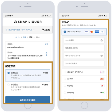配送・お支払い方法の選択